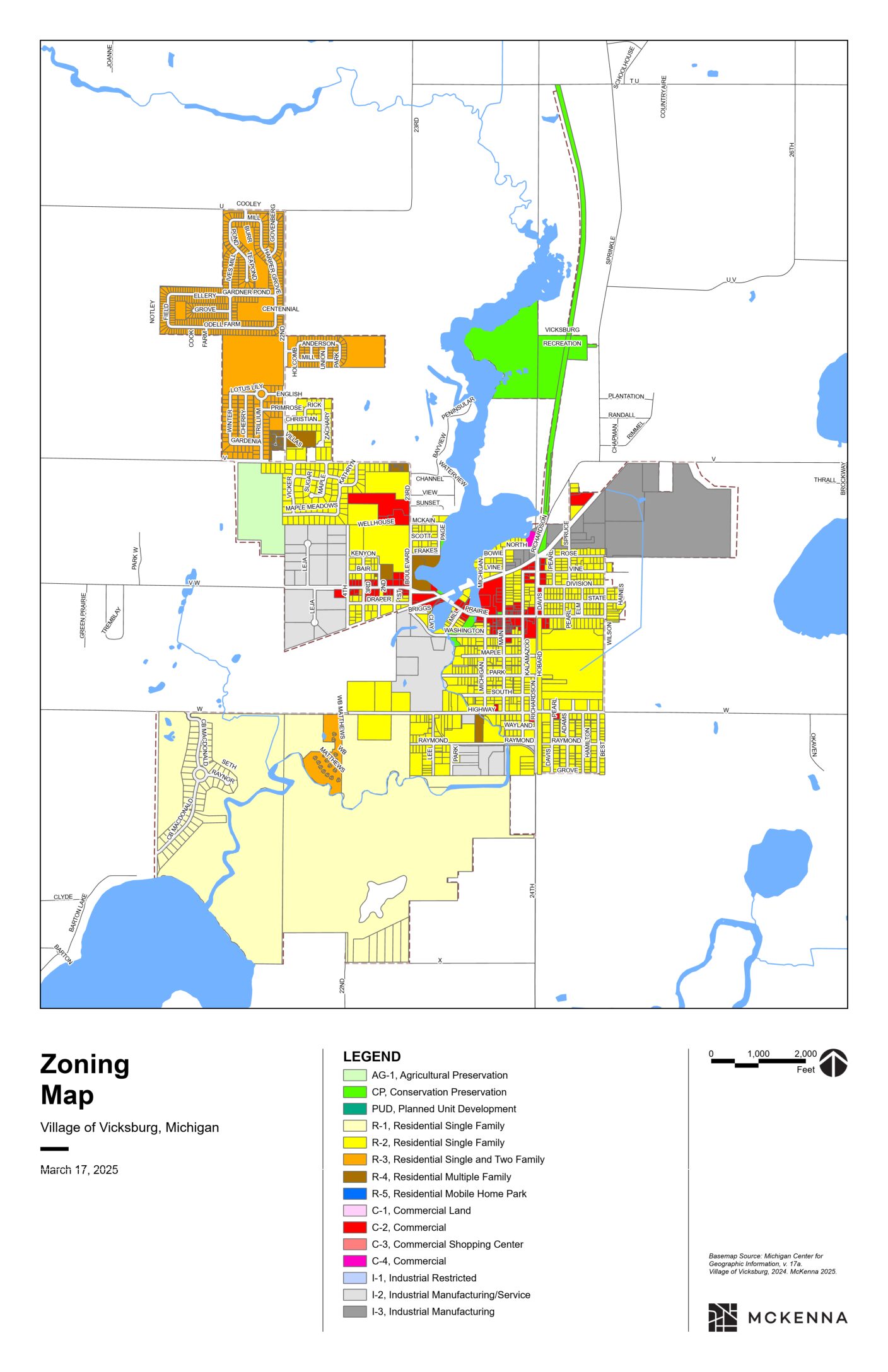 Please see links below for relevant forms and documents such as the Zoning Map, Zoning Ordinance, applications and fees. Fees can be paid by mail, use of the drop box located outside the front door of the Village Office, by phone with a debit or credit card (3% fee), electronically through your financial institution’s bill pay or cash, check, debit or any major credit card in the Village office at 126 N. Kalamazoo Ave., Vicksburg, MI 49094. Office hours are Monday through Thursday 7:30-5:30.